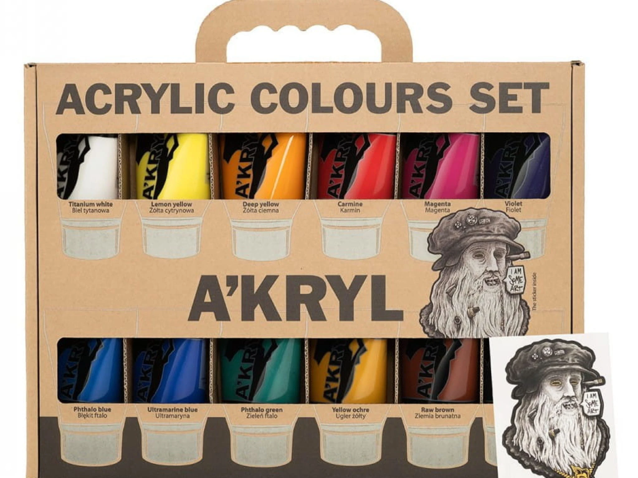 Farby A’KRYL Renesans pakowane są w plastikowe tuby, lekkie, wygodnie i bezpieczne w transporcie i przechowywaniu. Idealny zestaw na start lub po prostu do kreatywnego relaksu.