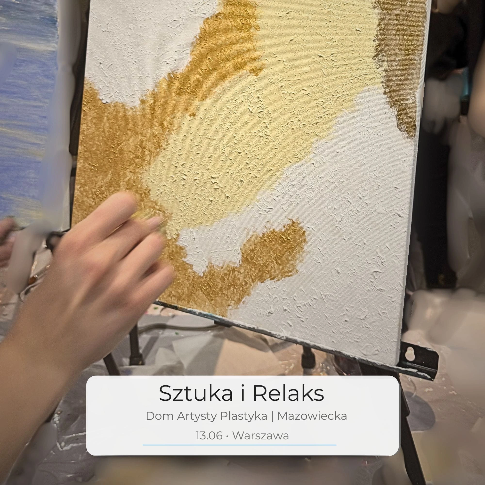 Zatrzymaj się po intensywnym dniu i wejdź w twórcze flow na kameralnych warsztatach malowania akrylami w Warszawie (Mazowiecka). Malujesz od podstaw i wychodzisz z własnym obrazem 40 × 50 cm — bez presji, za to z ulgą i lekkością. Zarezerwuj miejsce w kameralnej grupie.